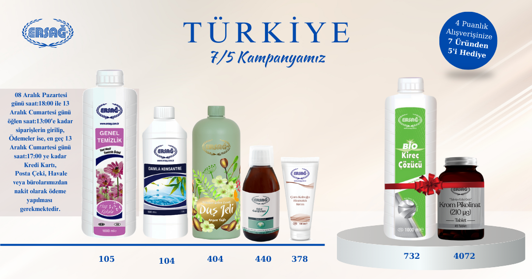 Tek 4 Puanlık siparişinize 7 PROMOSYONDAN 5 TANESİ HEDİYE
