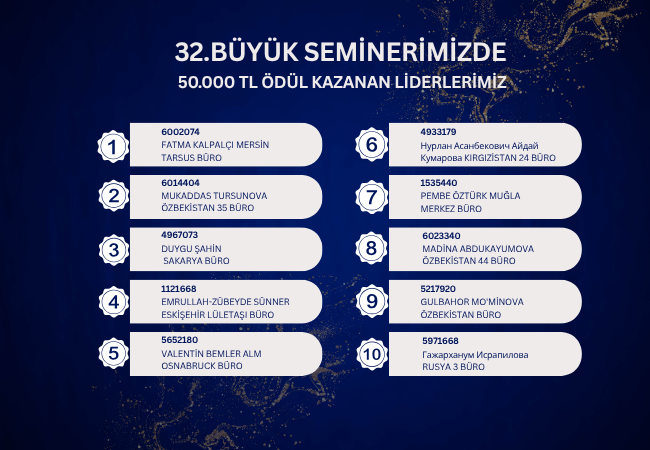 32. Büyük Seminerimizde Ödül Kazanan Liderlerimiz